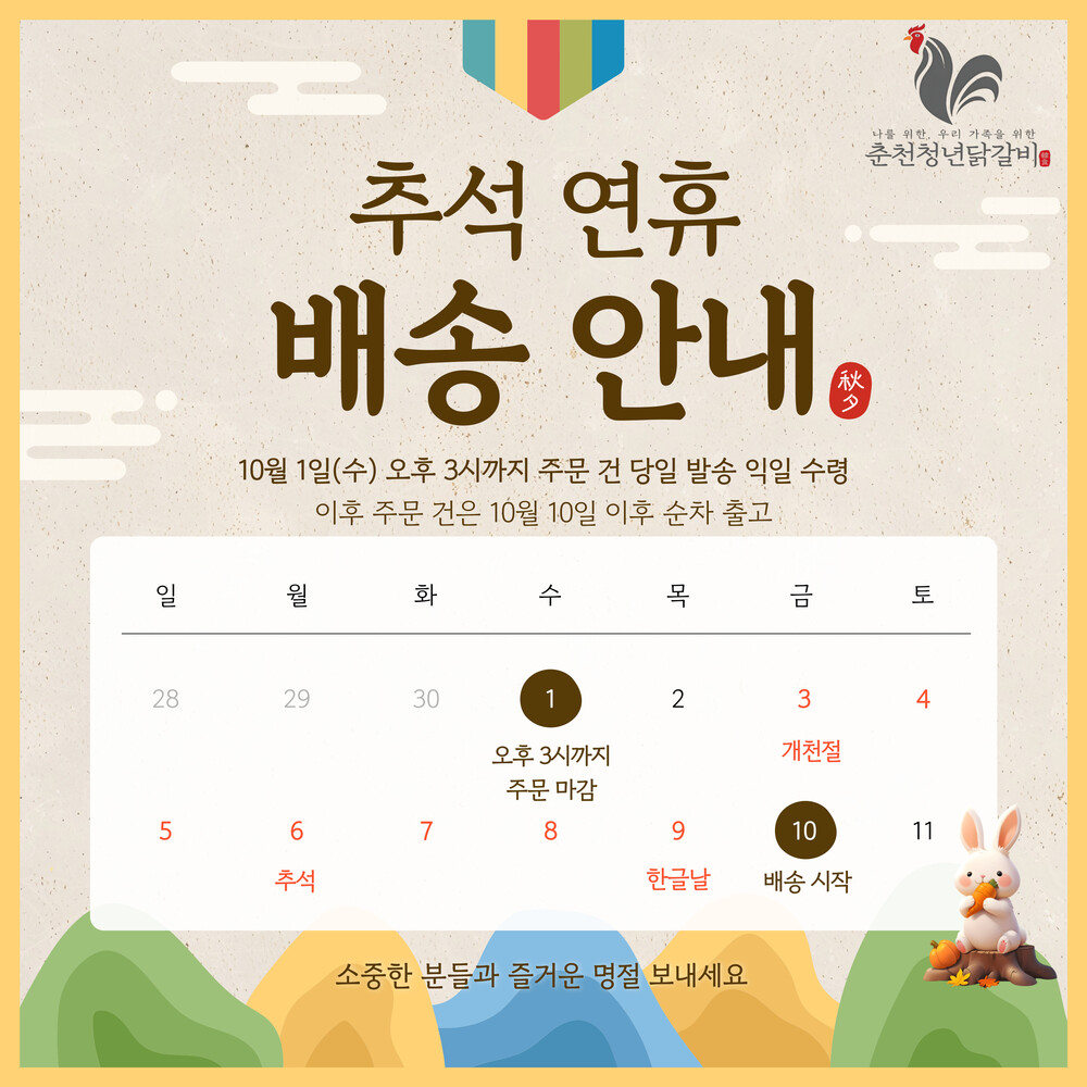 📌10월 1일(수) 오후 3시까지 주문-결제완료 건은 다음날 수령입니다.